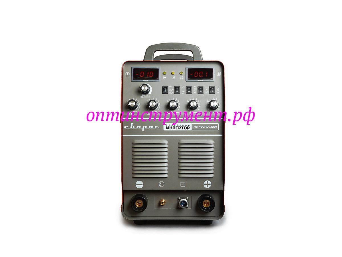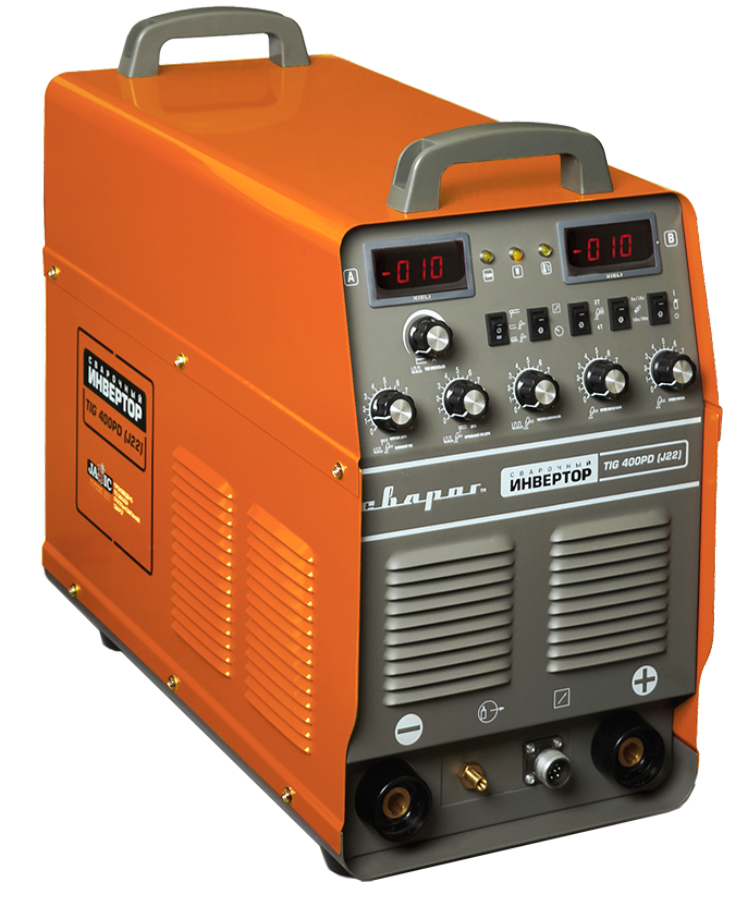 Аппарат серии STANDART TIG 400 P D (J22) - промышленный сварочный инвертор для аргонодуговой сварки (TIG) с режимом импульсной сварки, ручной дуговой сварки покрытым электродом (ММА), оборудован цифровыми индикаторами параметров сварки и большим набором ручных регулировок.