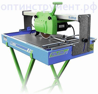 Камнерезный станок SIMA Perla 200 с однофазным электроприводом мощностью 750 Вт, рабочей длиной 640 мм и режущим диском с алмазными сегментами диаметром 200 мм для обработки строительных материалов, таких как плитка, кафель, гранит, мрамор. Особенностью данного звонка является его многофункциональность, он не только может разрезать полуфабрикаты, но и производить прорезание внутренних многооугольников, сверление отверстий различного диаметра (зависит от самого сверла). Три режима реза - боковой (горизонтальный), вертикальный и под наклоном в 45 градусов. Для этого ослабляется зажим кожуха диска, который позволяет поднимать и опускать диск на небольшую высоту. Станок оснащен электрическим насосом мощностью 10 Вт и емкостью объемом 24 литра, что позволяет циркулировать жидкости внутри.