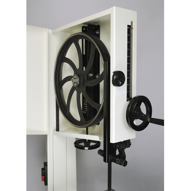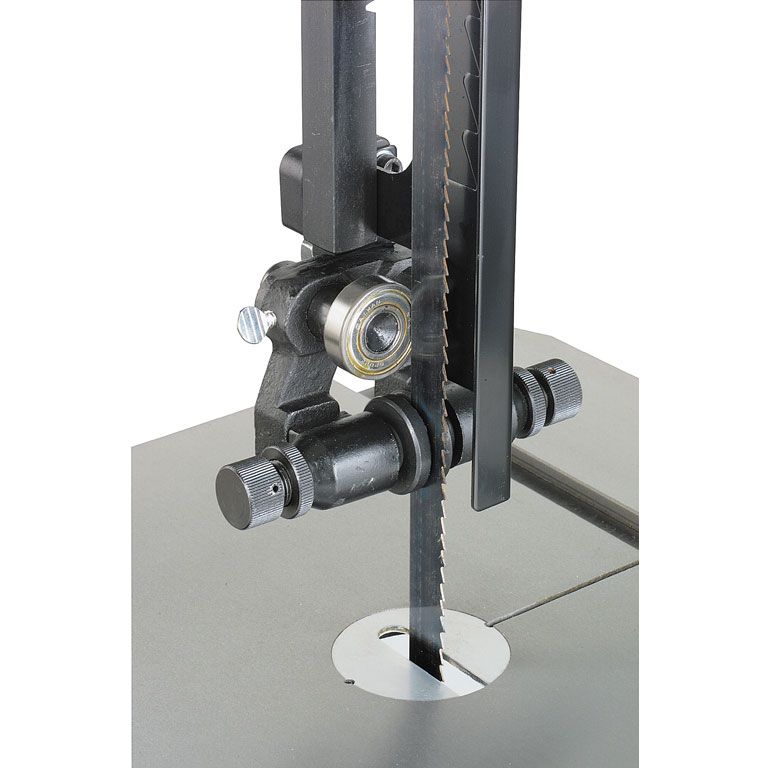 Высокая точность пиления определяется несколькими особенностями, одна из ключевых – направляющие пильной ленты в виде «пятаков», регулируемых под установленное полотно. Сам по себе узел направляющих, установленный на специальной рейке, жестко фиксируется непосредственно над заготовкой – небольшой просвет рамы в данном случае является достоинством. Jet JWBS-16X может работать с лентами шириной от 3 до 25 мм, то есть предоставляет все возможности подбора полотна, что имеет решающее значение для получения качественного реза.