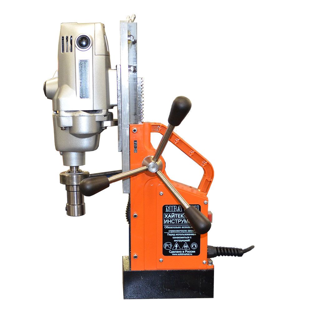 Переносной магнитный сверлильный станок MBA-38/1, производственный артикул 2120 14 - это продолжение развития направления бюджетных сверлильных станков на магнитном основании, с использованием электроприводов повышенной надежности. Все приводы, устанавливаемые на магнитные сверлильные станки МВА-38 имеют повышенную точность шпинделя, которая обеспечивается за счет 100% контроля параметров и прецизионной внутренней шлифовки. В этом заключается отличие используемых нами моторов от большинства остальных моделей, претендующих на звание "бюджетных".