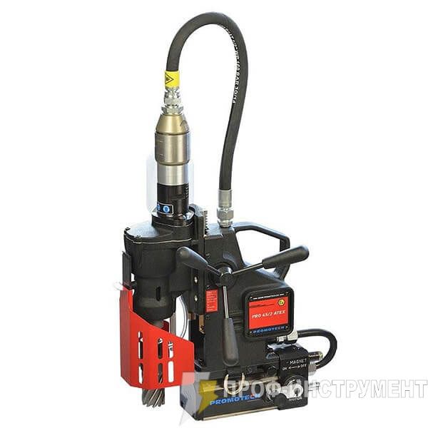 PRO-45 А — портативная сверлильная машина, которая способна высверливать отверстия диаметром до 45 мм (1-3/4"). Комбинация пневматического двигателя и магнитного основания избавляют от необходимости потребления электроэнергии, таким образом сверлильный станок PRO 45/2 Atex является идеальным решением для его использования во взрывоопасных зонах. Станок соответствует к стандарту ATEX II 2 G/D C IIC T6 / T4, и может использоваться в потенциально взрывоопасной среде.