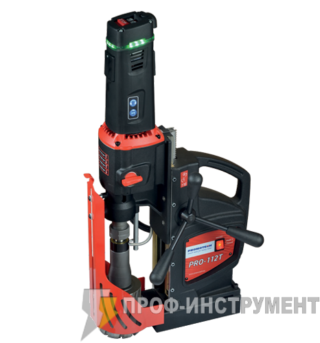 Сверлильный станок на магнитном основании PRO 112T– это новое поколение современных многофункциональных станков высокой мощности от Promotech. Магнитная сверлильная машина PRO -112Т представляет из себя промышленный сверлильный магнитный станок с большим крутящим моментом. Особое преимущество станка это литая конструкция корпуса, где привод и подвижные части образуют единый конструктивный элемент корпуса, обеспечивая жесткость крепления и точную фиксацию станка, его устойчивость, которые до этого время достигалась только в стационарных станках. Моноблочная конструкция , редуктор-суппорт, саморегулирующиеся направляющие исключают появление люфта, тем самым увеличивают срок эксплуатации и надёжность машины PRO 112T. В сверлильной машине на магнитном основании применен 4-х скоростной металлический редуктор позволяющий работать на малых оборотах, обеспечивая высокий крутящий момент без потери мощности.