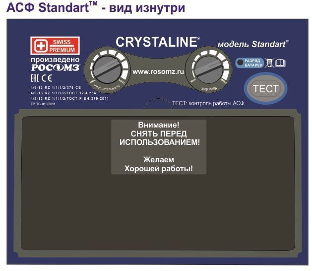 - светофильтр защищен от искр и брызг расплавленного металла, окалины, пыли и царапин снаружи панорамным покровным стеклом , от пыли, царапин и запотевания изнутри - подложкой Эталон ( материал покровного стекла и подложки - поликарбонат, оптический класс 1).