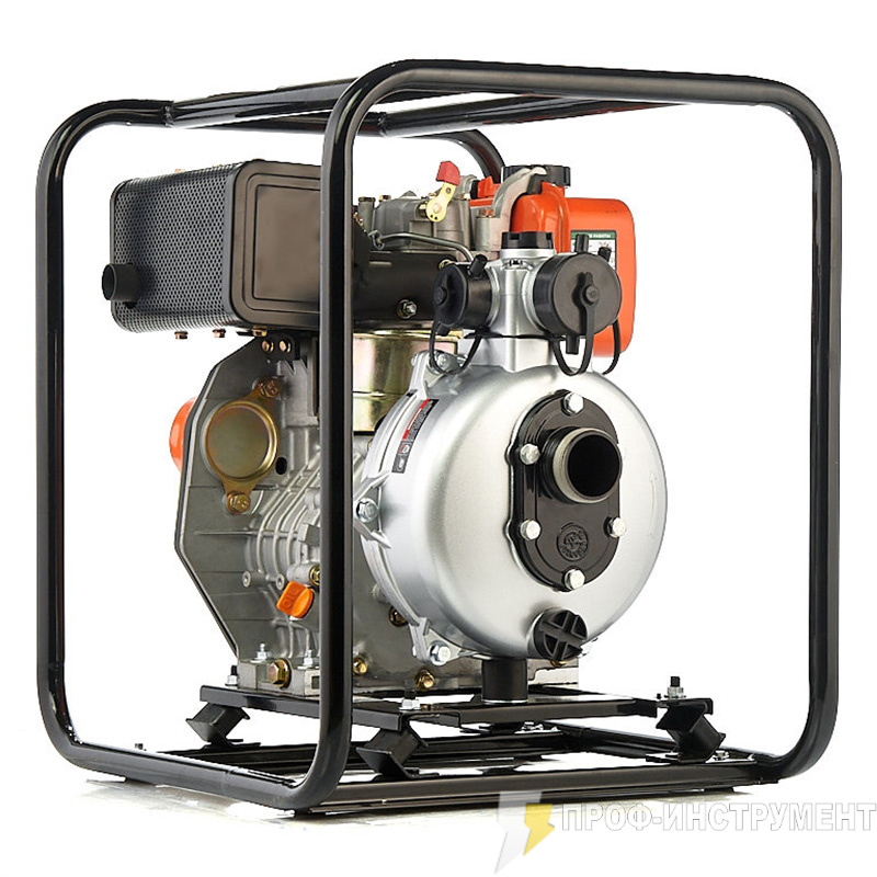 Дизельная высоконапорная мотопомпа. Тушение пожаров, перекачка воды на дальние растояние, полив. Мощность 5.4 лс, Производительность 18 куб м/час, напор 80 м, двигатель 186FA, D вх/вых 50/50-40-40 мм, размер частиц 1 мм, бак 3.5 л.
