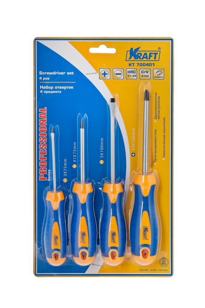 Набор отверток Kraft 4шт. (700401) в продаже по цене 0 руб. в Интернет-магазине Проф-инструмент с доставкой в Омске и Омской области. Звоните по телефону +8 (800) 302-10-51.