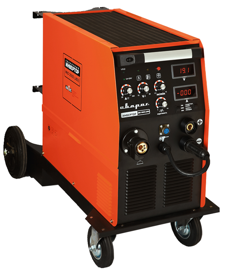 Модель серии STANDART MIG 3500 (J93) предназначена для механизированной сварки в среде защитного газа (MIG/MAG) и ручной дуговой сварки покрытым электродом (ММА). Режим обратной полярности позволяет также осуществлять сварку порошковой проволокой (FCAW) без защитного газа, модель дополнительнена функцией TIG сварки. Для удобства использования аппараты оснащены тележкой с поворотными колесами, на которую также устанавливается баллон с газом.