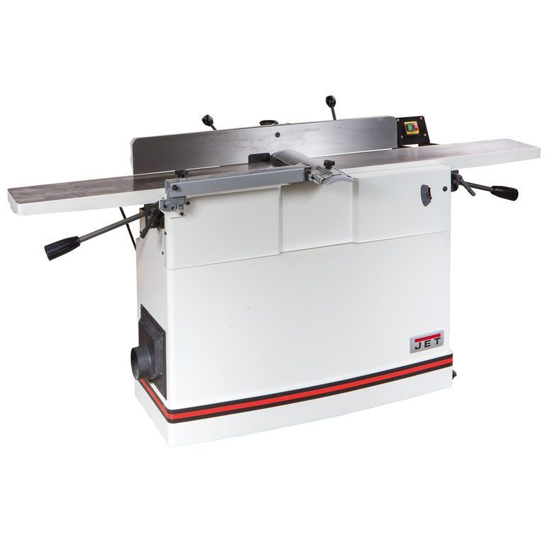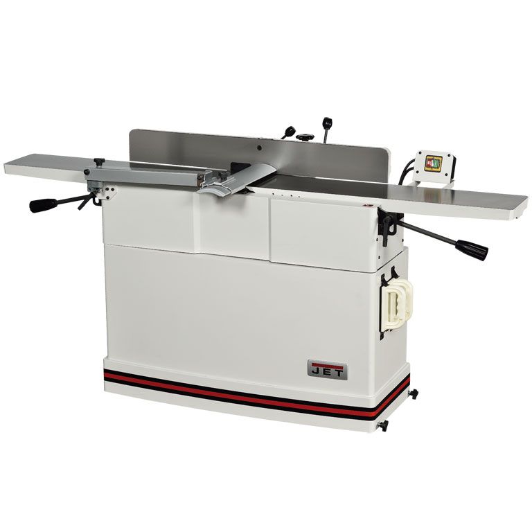 JJ-866 новый фуговальный станок Jet профессионального класса с шириной строгания 200 мм, оборудован длинными массивными чугунными столами. Может в качестве опции комплектоваться строгальным валом helical, который незаменим при работе с твердыми породами, по древесине с сучками и просто при интенсивной эксплуатации.