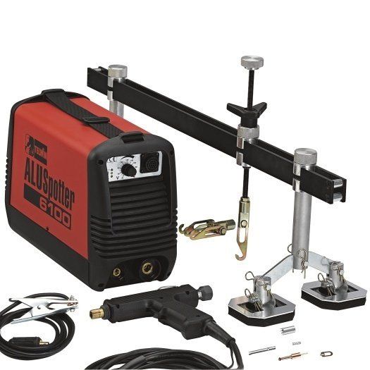 Портативный аппарат ALUSPOTTER 6100 115-230V, предназначен для точечной сварки. Применяется в авторемонтных мастерских для приварки шпилек и других принадлежностей диаметром 3-8 мм со скоростью 20 шт/мин.