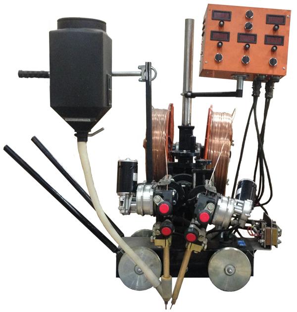 - Головка трактора состоит из двух независимых механизмов подачи проволок, с правильными устройствами, токоподводов, суппортов.