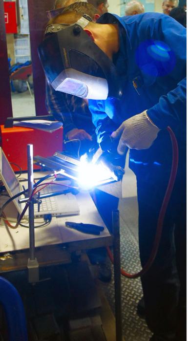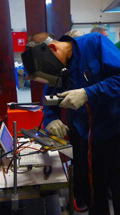 - Регистрировать информацию о тренировочном сеансе по длине дугового промежутка, углу наклона электрода, скорости сварки;