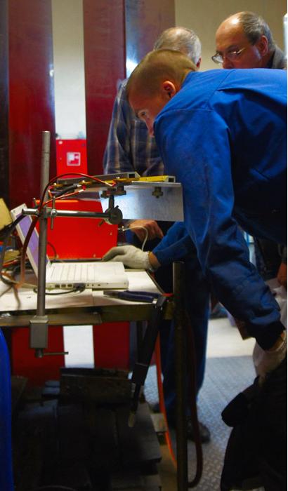 - Имитировать процесс сварки с помощью реальной малоамперной сварочной дуги;