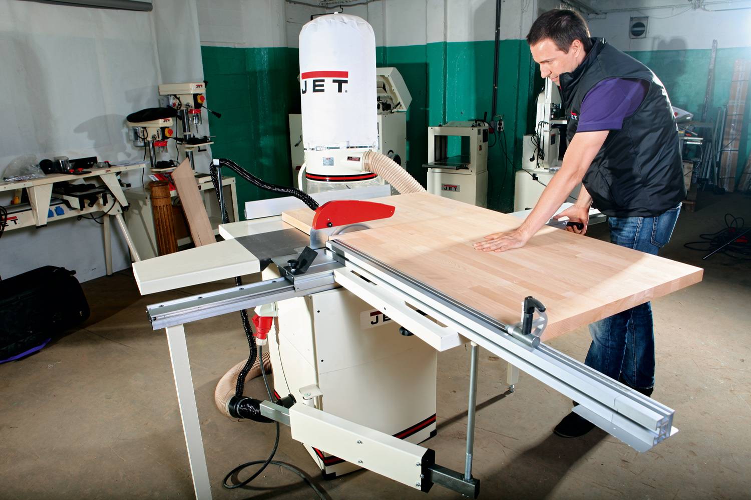 С учетом предельной (1600 мм) длины распиловки на подвижном столе и относительно небольшой массы станка можно рекомендовать его для любительской и профессиональной работы с некрупными мебельными панелями из ДСП и клееного щита, а работу с тяжелыми заготовками из массива плотной древесины ограничить на уровне эпизодического использования.